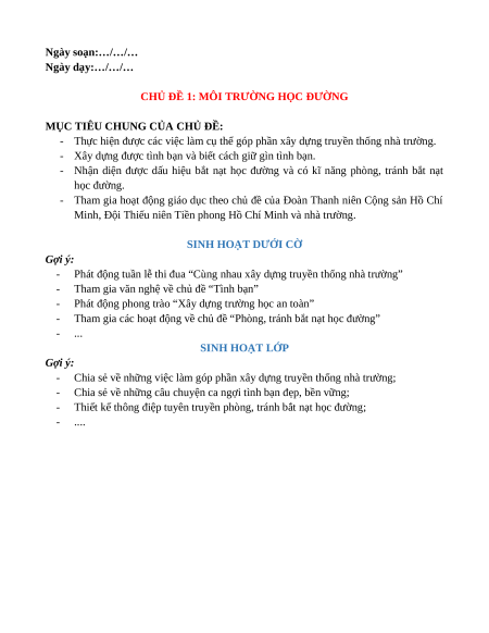 Tham gia các hoạt động về chủ đề “Phòng, tránh bắt nạt học đường” - ... SINH HOẠT LỚP Gợi ý: -