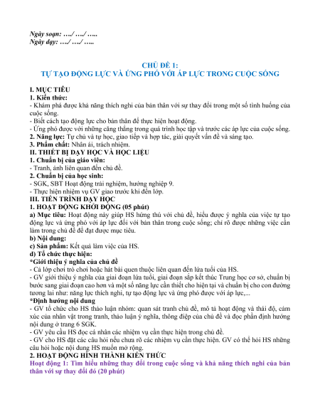 TỰ TẠO ĐỘNG LỰC VÀ ỨNG PHÓ VỚI ÁP LỰC TRONG CUỘC SỐNG I. MỤC TIÊU 1. Kiến thức: