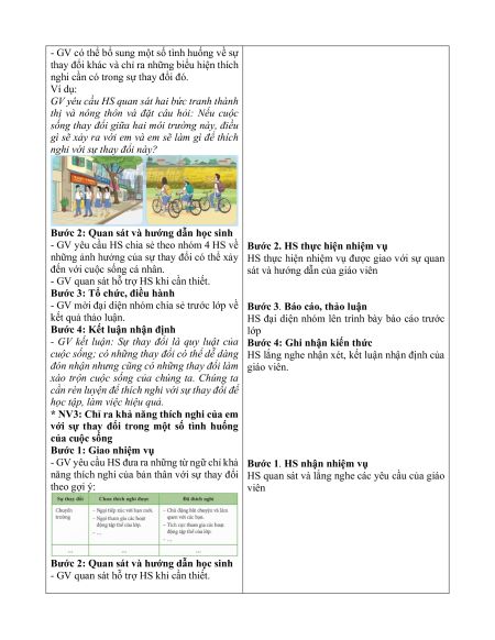 năng thích nghi của bản thân với sự thay đổi HS quan sát và lắng nghe các yêu cầu của giáo theo gợi ý: viên