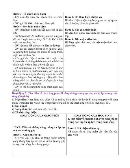 Hoạt động 2: Tìm hiểu về cách ứng phó với căng thẳng trong học tập và áp lực trong cuộc sống (20 phút)