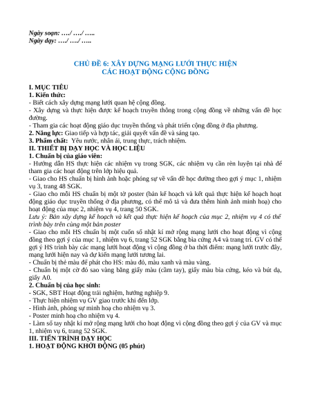 CÁC HOẠT ĐỘNG CỘNG ĐỒNG I. MỤC TIÊU 1. Kiến thức:
