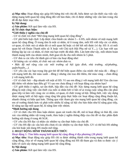 cộng đồng, chia sẻ về mạng lưới quan hệ cộng đồng mà HS đã tham gia và đưa ra được các ý