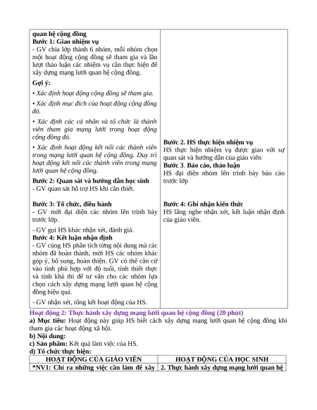 Hoạt động 1: Tìm hiểu mạng lưới quan hệ cộng đồng ở địa phương (20 phút)