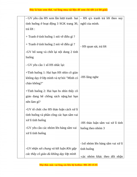 tình huống ở hoạt động 3 SGK trang 30, nghĩ của mình. trả lời :
