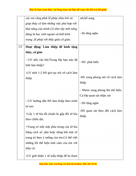 13’ Hoạt động: Làm thiệp để kính tặng thầy, cô giáo