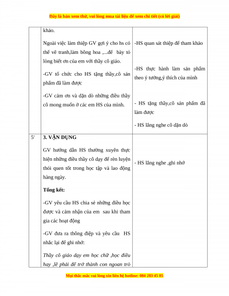 - HS lắng nghe cô dặn dò 5' 3. VẬN DỤNG