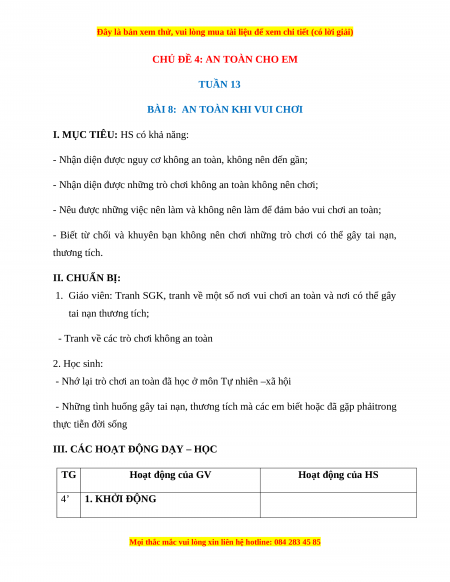 CHỦ ĐỀ 4: AN TOÀN CHO EM TUẦN 13