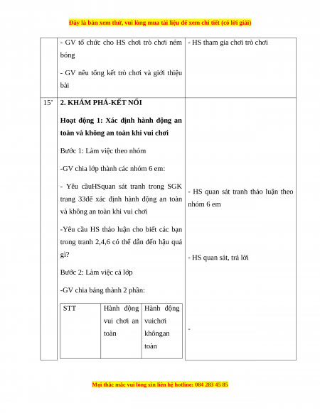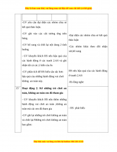 -GV chia bảng thành 2 phần: STT Hành động Hành động vui chơi an vuichơi - toàn khôngan toàn