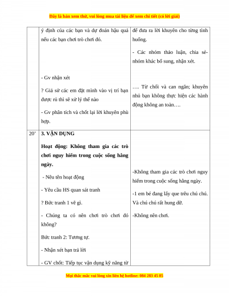 -Không tham gia các trò chơi nguy - Nêu tên hoạt động
