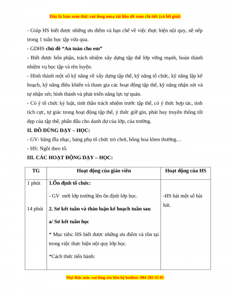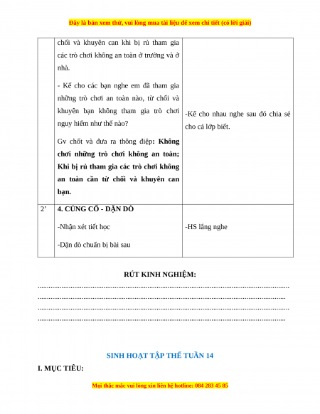 SINH HOẠT TẬP THỂ TUẦN 14 I. MỤC TIÊU:
