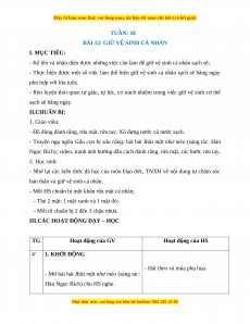BÀI 12: GIỮ VỆ SINH CÁ NHÂN I. MỤC TIÊU: