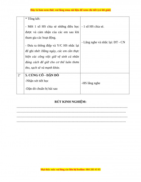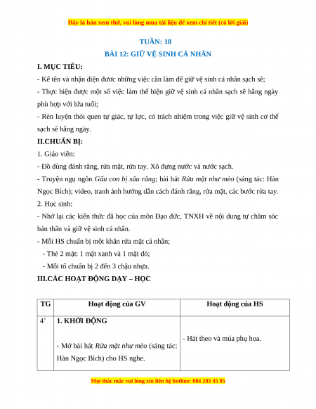 - Rèn luyện thói quen tự giác, tự lực, có trách nhiệm trong việc giữ vệ sinh cơ thể sạch sẽ hằng ngày. II.CHUẨN BỊ: 1. Giáo viên: