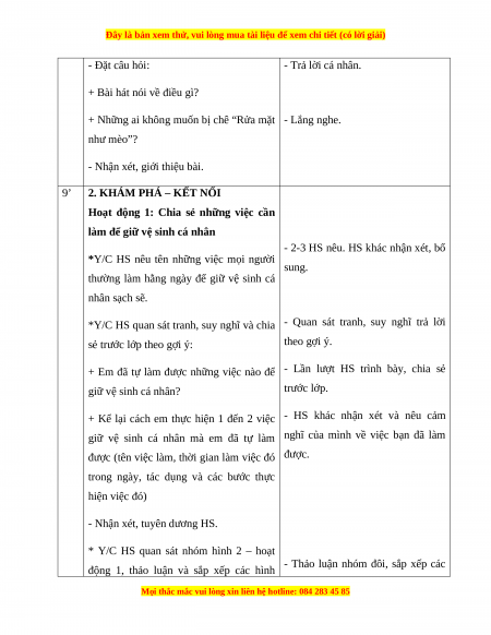 sẽ, thơm tho, khỏe mạnh. 9’ 3.THỰC HÀNH