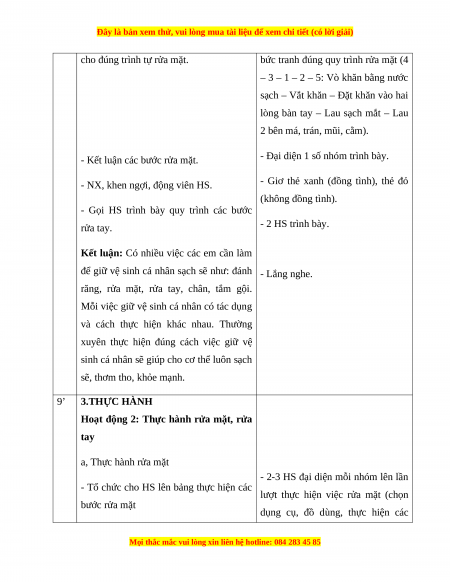 Hoạt động 2: Thực hành rửa mặt, rửa tay a, Thực hành rửa mặt