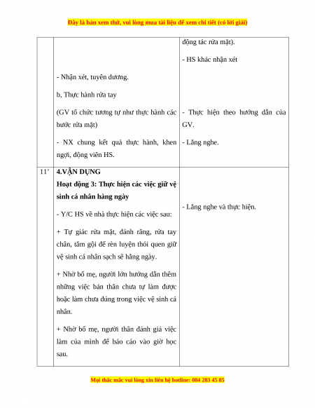 - Mỗi HS chuẩn bị một khăn rửa mặt cá nhân;