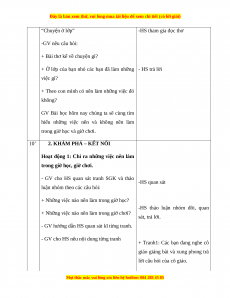 những việc nên làm trong giờ học và giờ nên làm vào phiếu