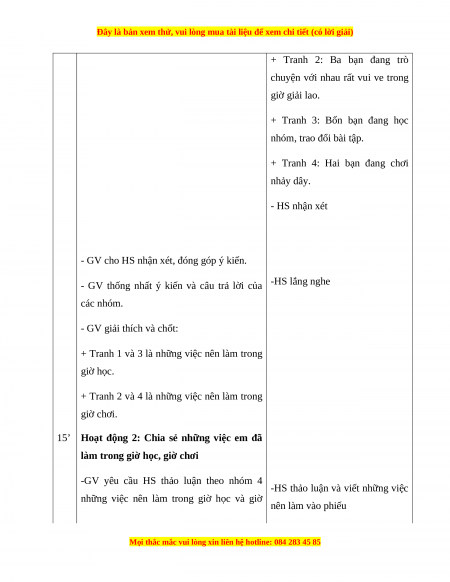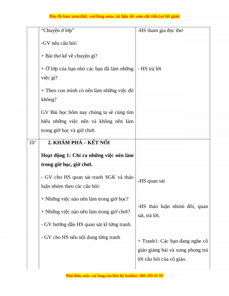 BÀI 2: NHỮNG VIỆC NÊN LÀM TRONG GIỜ HỌC, GIỜ CHƠI (Tiết 1)