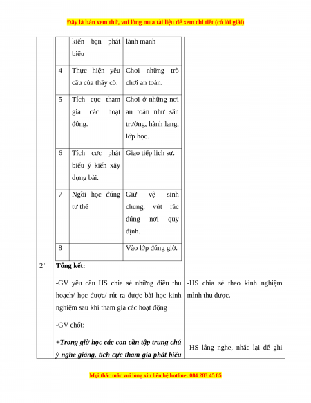 - Rèn kĩ năng kiên định, từ chối thực hiện những việc không nên làm trong giờ học và giờ chơi.