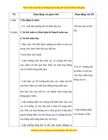 2. Sơ kết tuần và thảo luận kế hoạch tuần sau