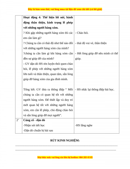 - Biết thể hiện tình cảm, thái độ thân thiện với hàng xóm.