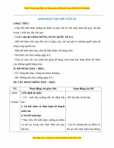 SINH HOẠT TẬP THỂ TUẦN 26 I.MỤC TIÊU: