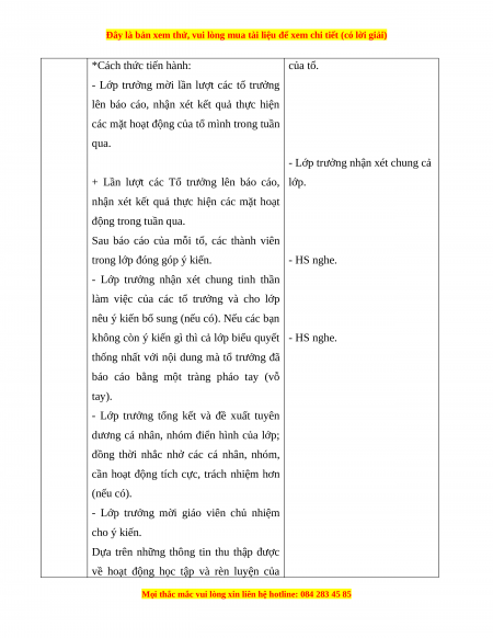 - Lớp trưởng mời lần lượt các tổ trưởng