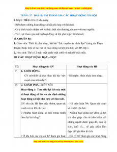 TUẦN: 27 BÀI 18: EM THAM GIA CÁC HOẠT ĐỘNG XÃ HỘI
