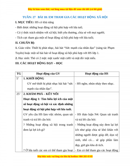 - Tích cực tham gia một số hoạt động xã hội phù hợp với lứa tuổi; II. CHUẨN BỊ: