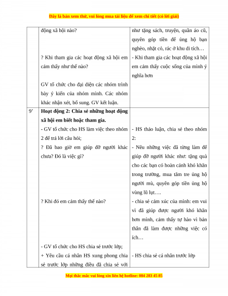 - Biết được những hoạt động xã hội phù hợp với lứa tuổ;