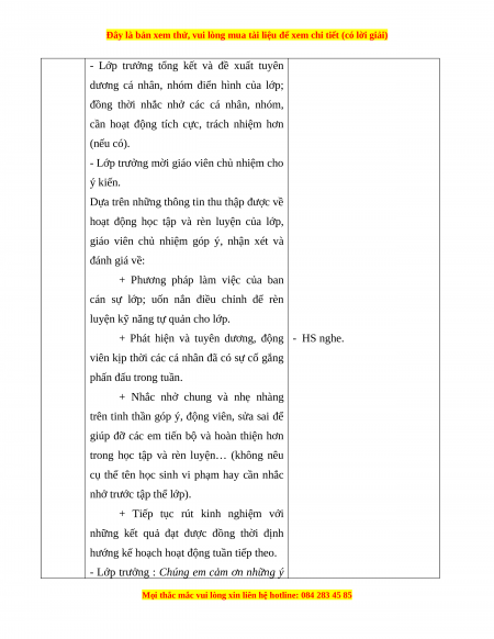 - Lớp trưởng tổng kết và đề xuất tuyên