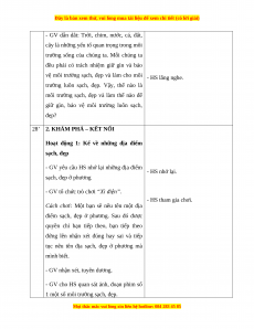 - Học sinh: Nhớ lại những địa điểm sạch, đẹp ở địa phương.