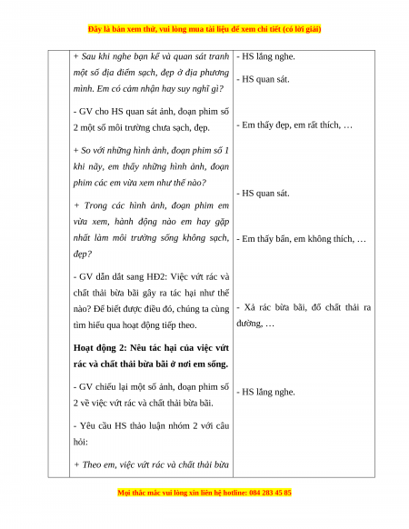- GV dẫn dắt sang HĐ2: Việc vứt rác và