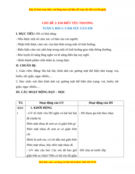 TUẦN 5. BÀI 1: CẢM XÚC CỦA EM