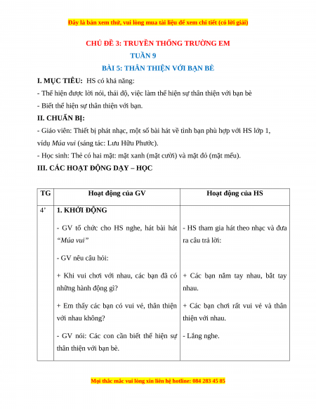 BÀI 5: THÂN THIỆN VỚI BẠN BÈ