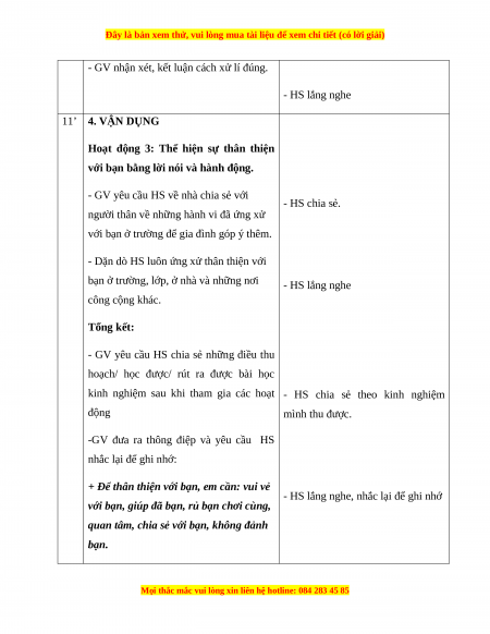 - GV nhận xét, kết luận cách xử lí đúng. - HS lắng nghe 11’ 4. VẬN DỤNG
