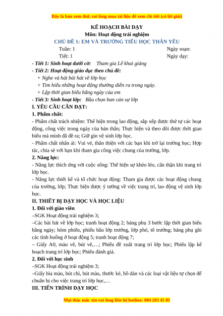 CHỦ ĐỀ 1: EM VÀ TRƯỜNG TIỂU HỌC THÂN YÊU Tuần: 1 Ngày soạn: Tiết: 1 Ngày dạy: