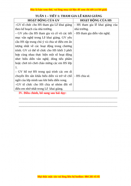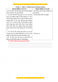 - Tiết 1: Sinh hoạt dưới cờ: Tham gia Lễ khai giảng