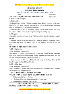 - Tiết 2: Hoạt động giáo dục theo chủ đề: