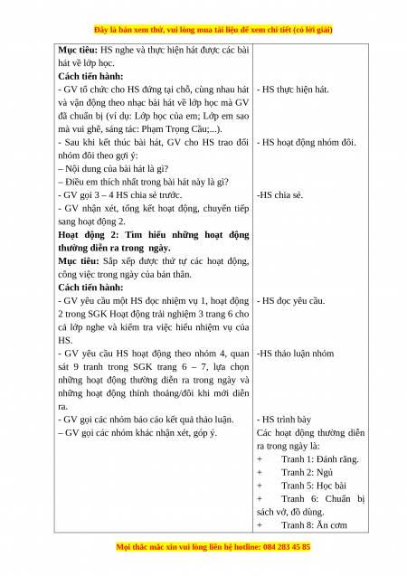 Mục tiêu: Sắp xếp được thứ tự các hoạt động,