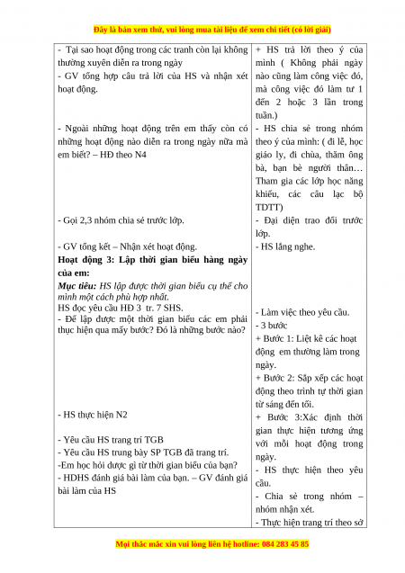 Mục tiêu: HS lập được thời gian biểu cụ thể cho