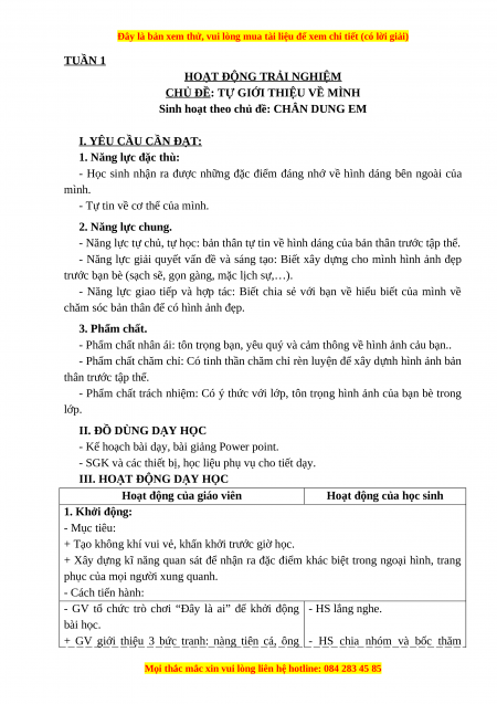 Sinh hoạt theo chủ đề: CHÂN DUNG EM I. YÊU CẦU CẦN ĐẠT: 1. Năng lực đặc thù: