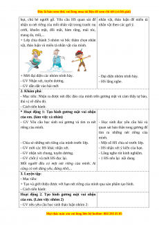 + Tạo và giới thiệu được với bạn nét riêng của mình qua sản phẩm tạo hình. - Cách tiến hành: