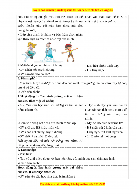 - Mục tiêu: Nhận ra được nét độc đáo của mình trên gương mặt và cảm thấy tự hào, thú vị về điều đó. - Cách tiến hành: