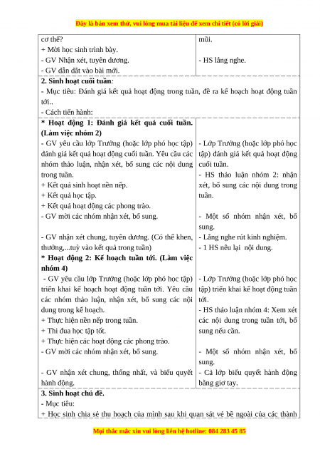 - Mục tiêu: Đánh giá kết quả hoạt động trong tuần, đề ra kế hoạch hoạt động tuần