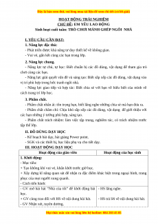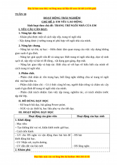 HOẠT ĐỘNG TRẢI NGHIỆM C HỦ ĐỀ 3 : EM YÊU LAO ĐỘNG