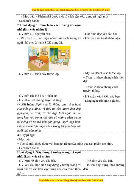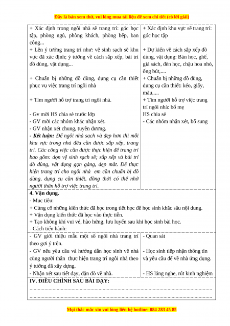 - Xây dựng được ý tưởng trang trí phù hợp với ngôi nhà của mình. 2. Năng lực chung.