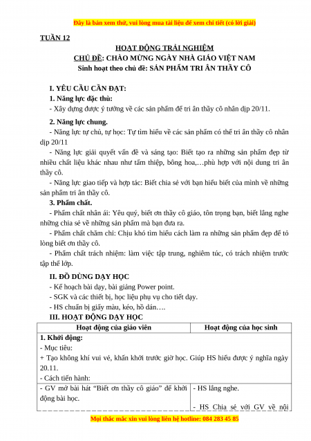 - Xây dựng được ý tưởng về các sản phẩm để tri ân thầy cô nhân dịp 20/11. 2. Năng lực chung.