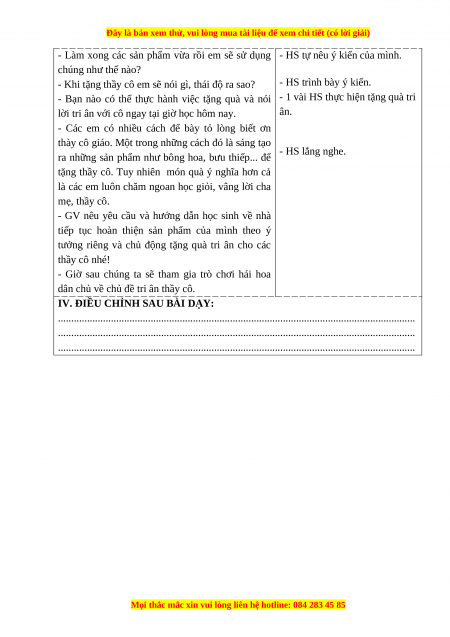 - Mục tiêu: Biết lựa chọn ý tưởng làm quà tri ân tặng thầy cô nhân ngày Nhà giáo VN. - Cách tiến hành: