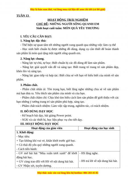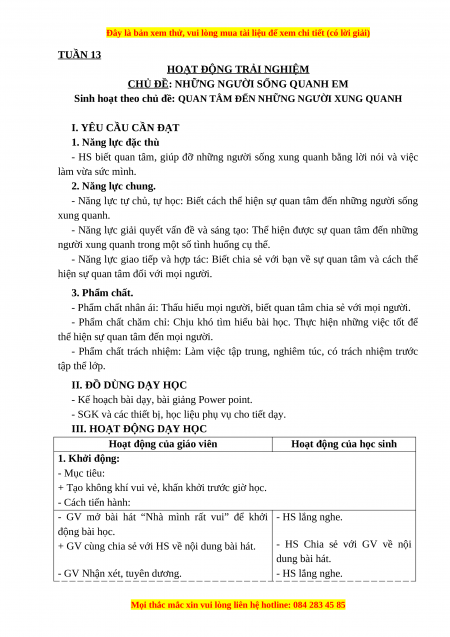 Sinh hoạt theo chủ đề: QUAN TÂM ĐẾN NHỮNG NGƯỜI XUNG QUANH I. YÊU CẦU CẦN ĐẠT 1. Năng lực đặc thù