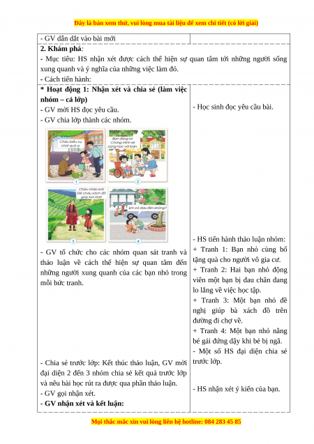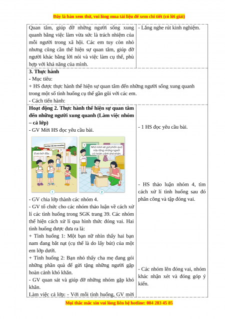 + HS được thực hành thể hiện sự quan tâm đến những người sống xung quanh